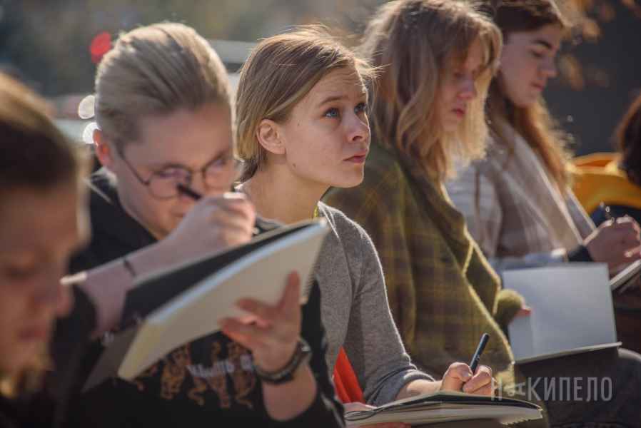 Am Morgen des 2. Oktobers sind 20 junge Künstler aus Charkiw, die urbane Architektur gerne malen, zum Pleinair des Urbansketchings "Deutsche Spuren" gekommen. Die Veranstaltung fand im Rahmen der Deutschen Wochen in der Ukraine statt.