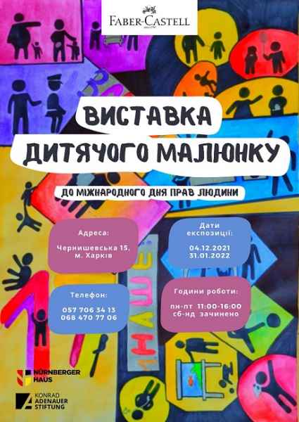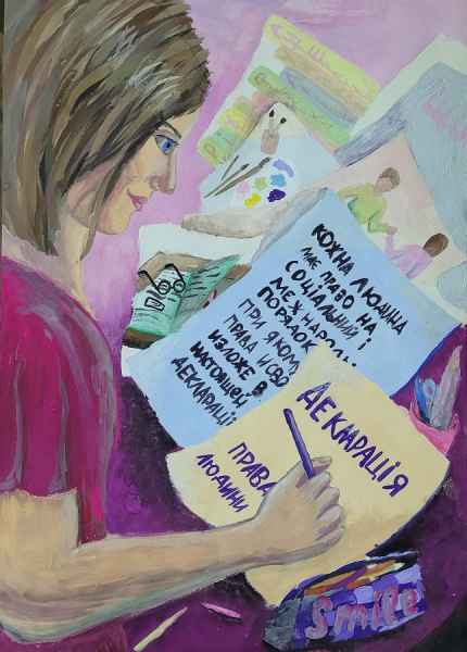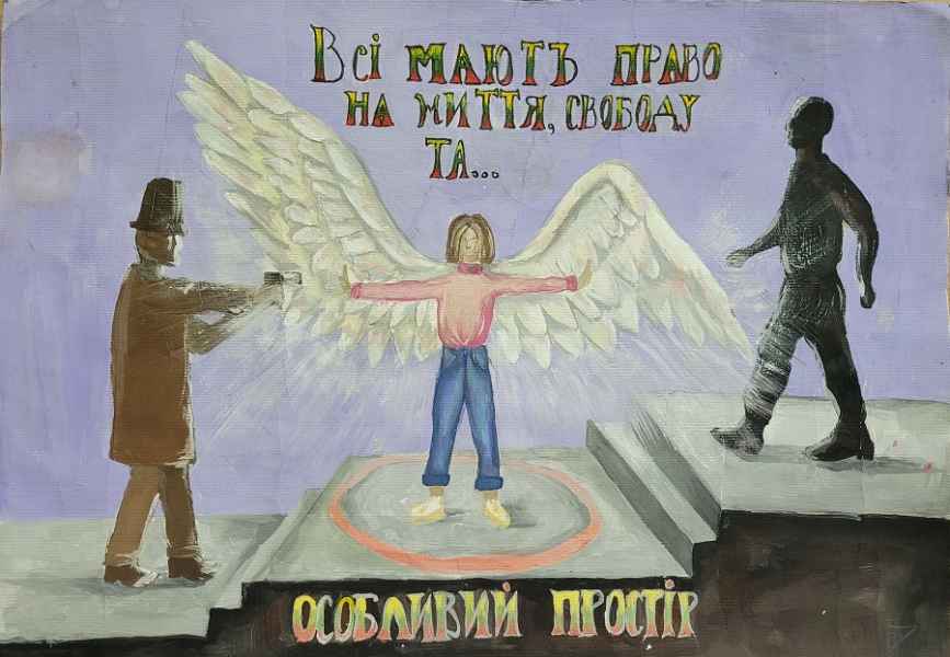 Um die Situation zu verbessern, haben wir uns an kreative Jugendliche aus vier Kunstschulen gewandt: aus dem Kunstlyzeum №133, der Charkiwer Musikschule №10, der M.-D.-Leontowitsch-Kunstschule für Kinder und dem Designstudio "Palette". Gemeinsam mit 60 Kindern haben wir eine Ausstellung zusammengestellt, wo Menschenrechte zugänglich und anschaulich präsentiert werden.