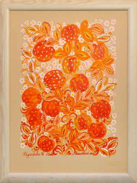 Авторка робіт — Ганна Булгакова, мисткиня, що почала малювати в 27 років. Оволоділа техніками Петриківського, Полхов-Майданськького, Городецького розпису, Хохломою та Гжелем. Отримала спеціальність "митець розпису по дереву" та "художник-декоратор". Працює в різних графічних і живописних техніках, захоплюється фотографією та мандрами.